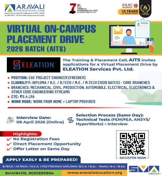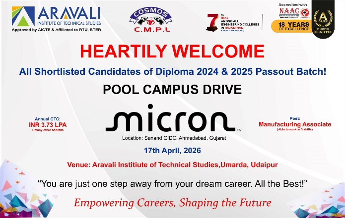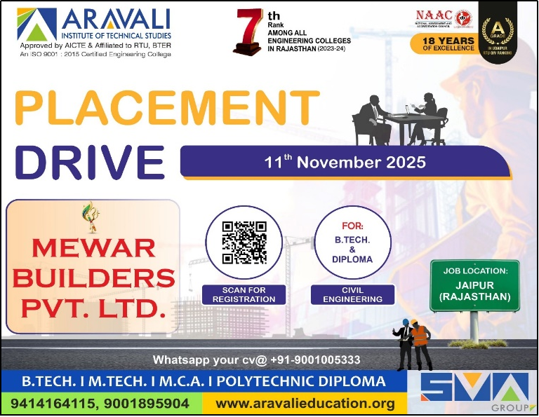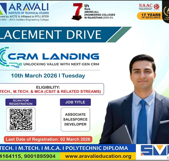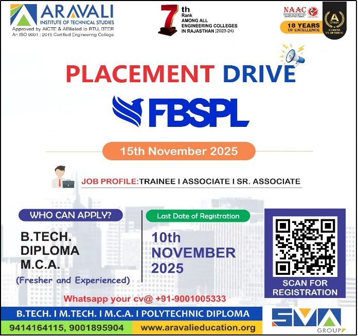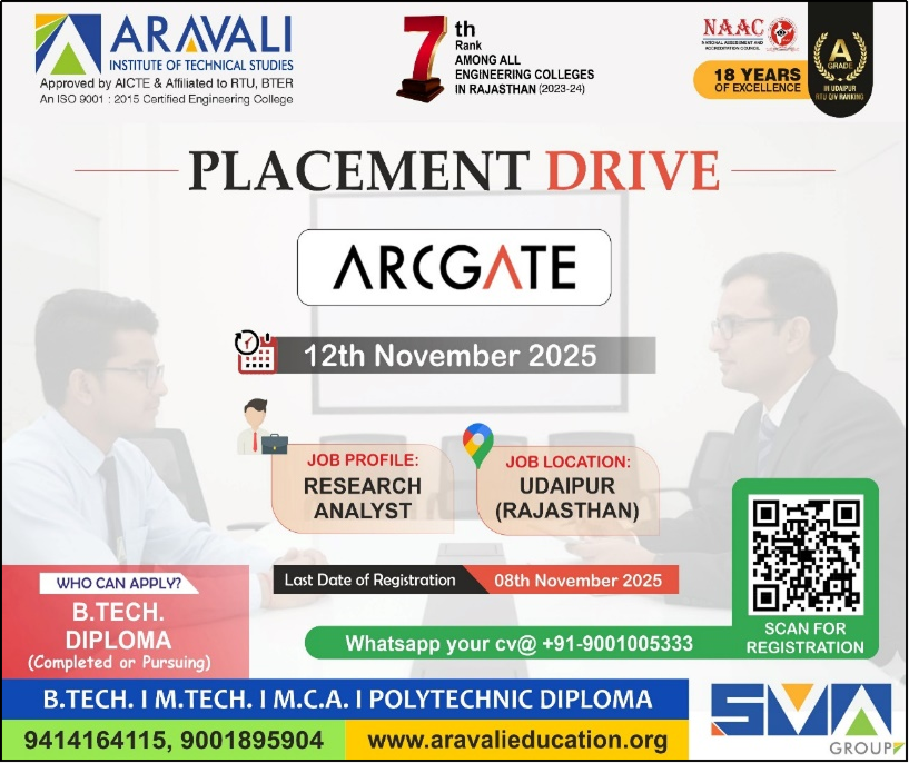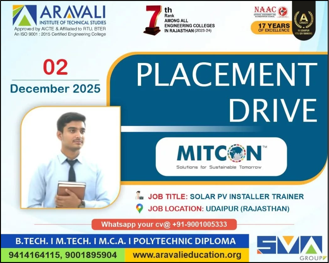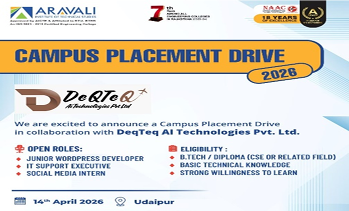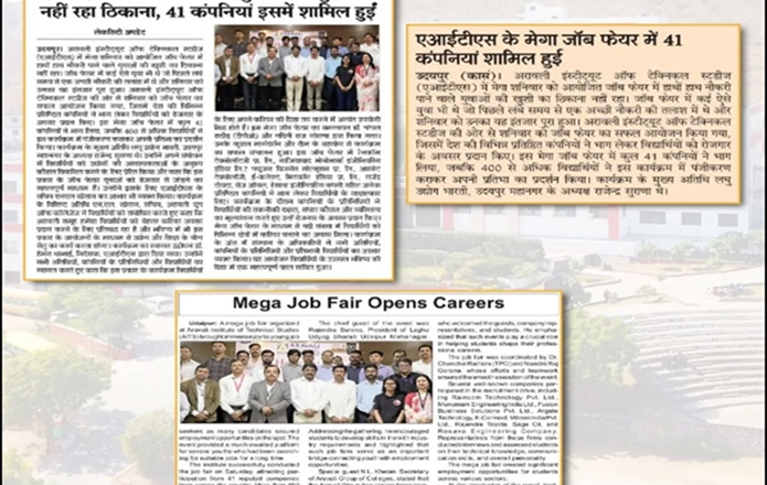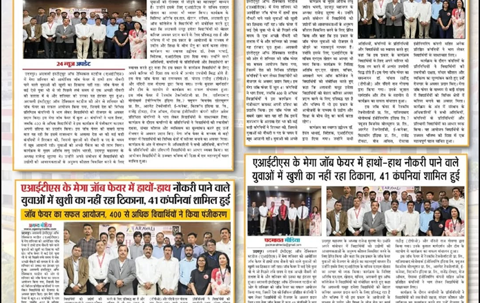 Aravali Institute of Technical Studies (AITS), Udaipur successfully organized a Mega Job Fair, providing a great platform for students to connect with leading industries. A total of 41 reputed companies participated in the event, while 400+ students registered to explore career opportunities and showcase their talent.