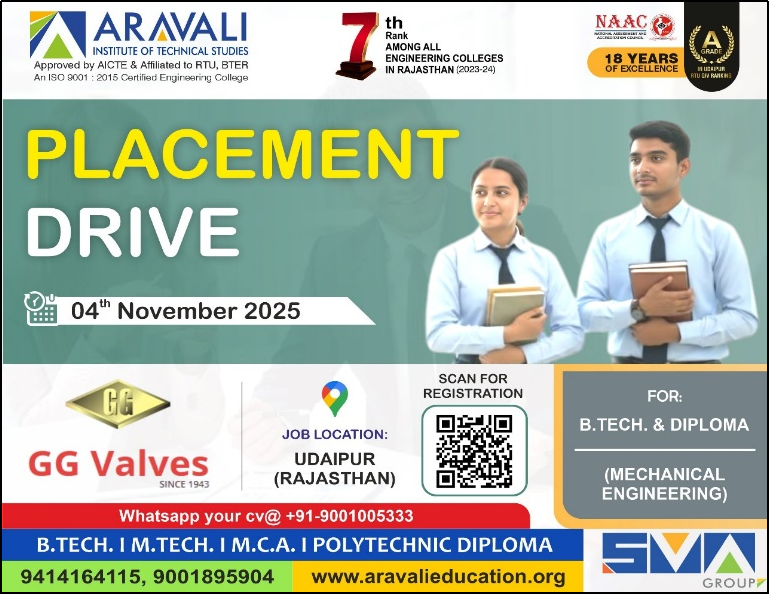 AITS was proud to host GG Valves Pvt. Ltd., Udaipur, for a focused recruitment drive, connecting our skilled graduates with leading roles in precision engineering. This partnership highlights our dedication to fueling local industrial growth with top-tier technical talent.